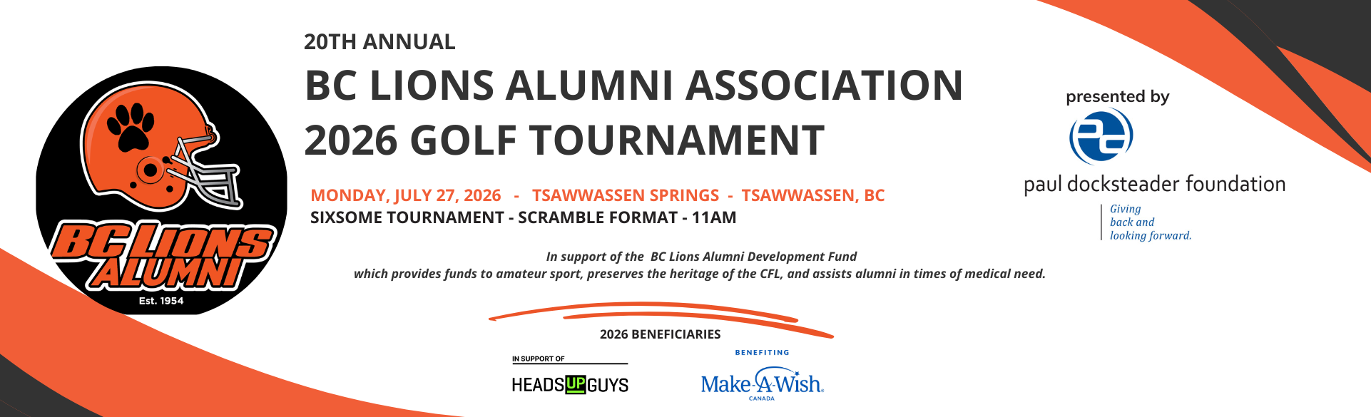 Thank you for supporting the Annual BC Lions Alumni Association Golf Tournament. Registered Charity Number: 119215333 RR0001